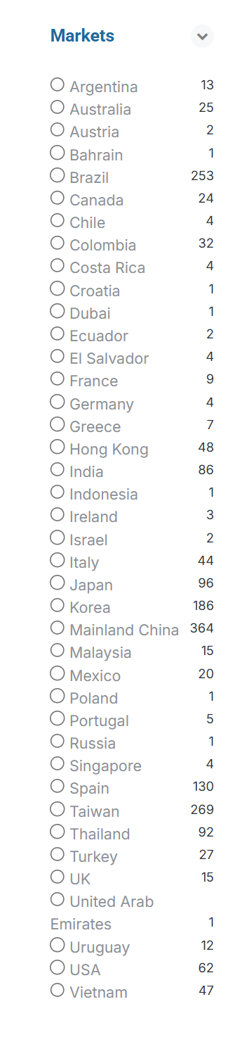왼쪽 메뉴 중 Market을 선택하면 나라별로 치료한 것도 볼 수 있습니다.