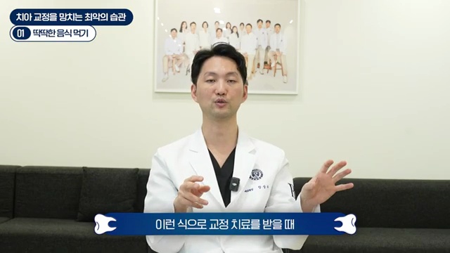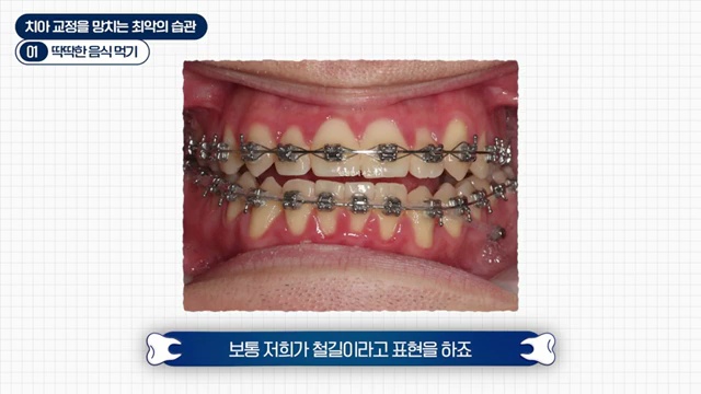 첫 번째로 제가 항상 강조하는 것은, 특히 발치교정을 하시는 분들에게 더욱 중요한 얘기인데요. 딱딱한 거 먹지 마세요.