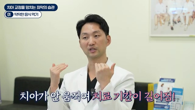 물론 사람마다 치아 이동 속도가 다르고, 한 사람에서도 오른쪽 왼쪽, 위아래 속도가 다를 수 있습니다. 그걸 조정하는 게 저희가 할 일이지만, 아무 문제가 없는데 치아교정이 늘어진다는 건 굉장히 억울하잖아요. 그래서 오늘은 절대 하면 안 되는 것, 고쳐야 할 습관들에 대한 이야기를 해보겠습니다.
