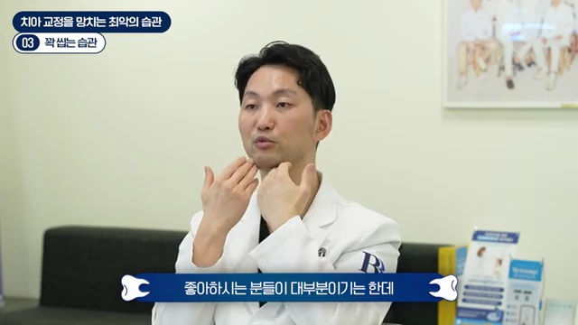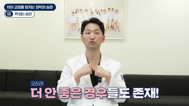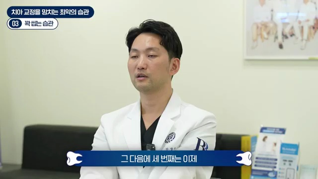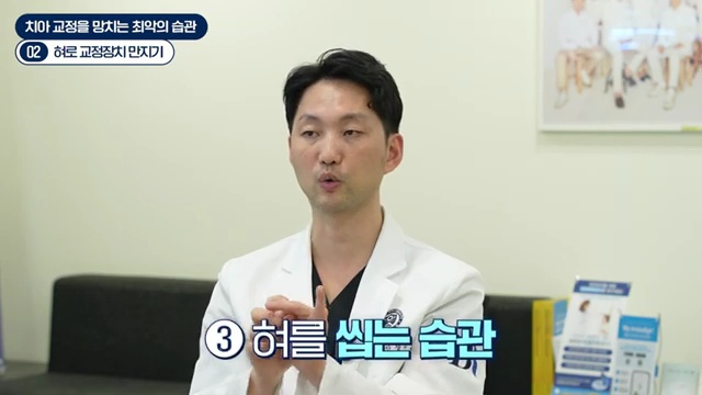 입술을 깨무는 습관, 혀를 내미는 습관, 혀를 씻는 습관 이런 것들은 있으면 반드시 고치는 게 교정 치료가 늘어지는 걸 방지할 수 있고요. 교정이 끝났다 하더라도 그런 습관이 남아 있게 되면 재발을 합니다.